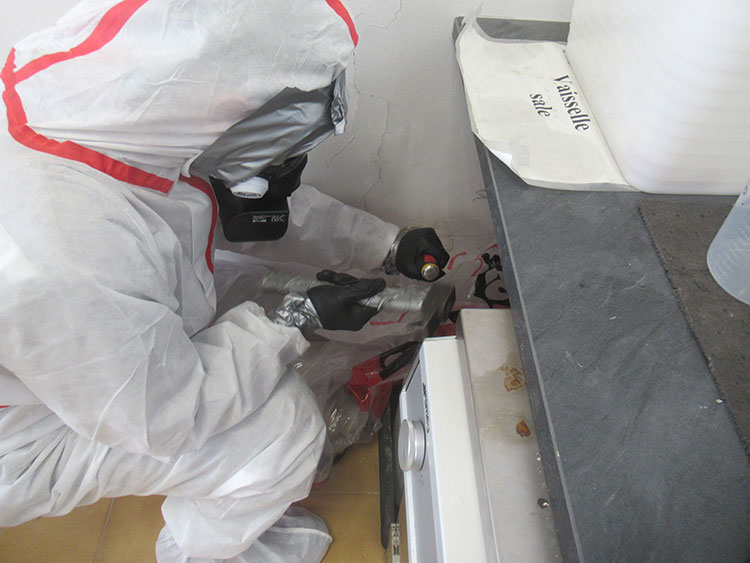 Nous réalisons des prélèvements et des repérages avant travaux (RAAT) pour aider les Maîtres d’Ouvrage à informer leurs intervenants des risques d’exposition aux produits CMR.